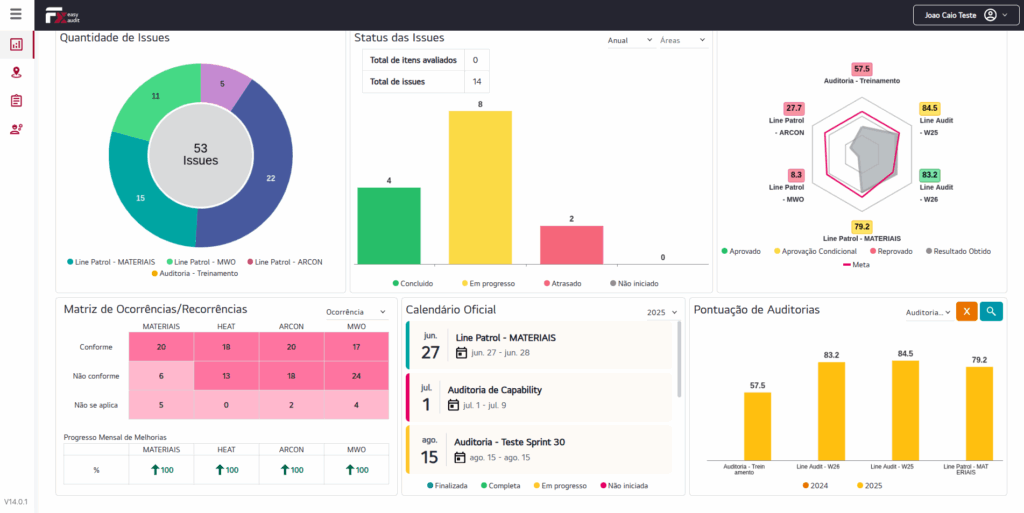 Os tempos de conclusão da auditoria caíram de 10 para apenas três dias, liberando os auditores para análises estratégicas em vez de tarefas administrativas. Relatórios e planos de ação agora são gerados automaticamente, reduzindo drasticamente o erro humano e fornecendo à gestão indicadores operacionais em tempo real.